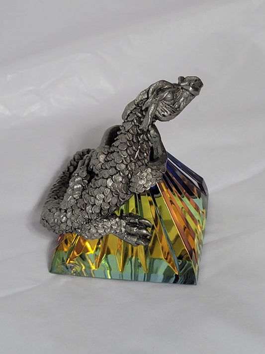 Crystal Pyramid with Pewter Dragon