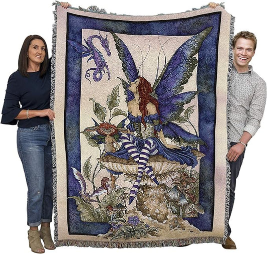 Bottom of The Garden Fairy by Amy Brown, Tapestry Throw Woven from Cotton
