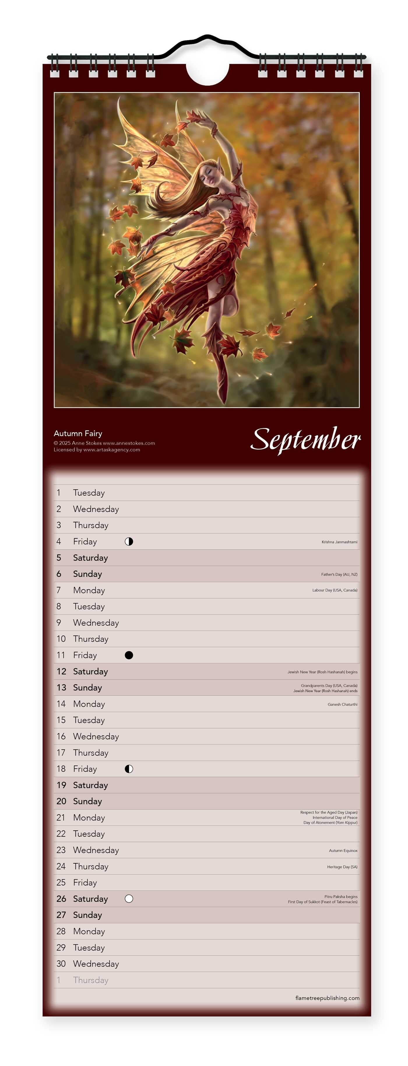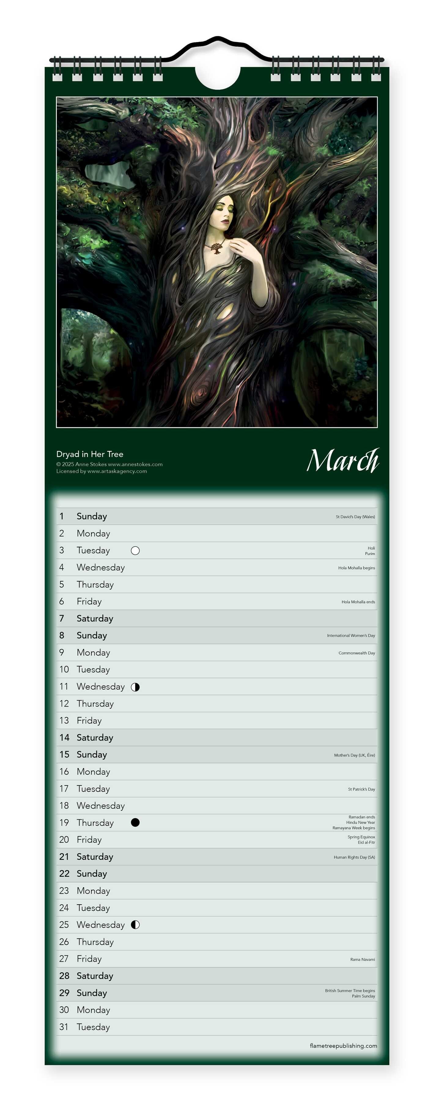 The fantasy art of Anne Stokes features striking designs and lifelike portrayals of fantasy subjects. Her art covers a broad range of themes, from the romantic and magical enchanted forest, to fearsome dragons and the dark underworld of gothic vampires. In this magical slim calendar we’ve brought together 12 of her wonderful fantasy images. Printed on FSC-certified paper, with plastic-free packaging.