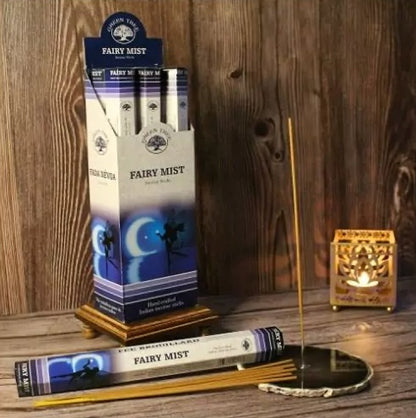 Fairy mist makes your home smell like you've been visited by a world of magic that left behind fairy dust. It can be described as fresh, magical and positive. Green Tree symbolizes the precious natural products that you discover during world travels across different continents through all kinds of cultures and unknown corners. She brings back a backpack full of treasures, which you can find in the pure scent of fairy dust.