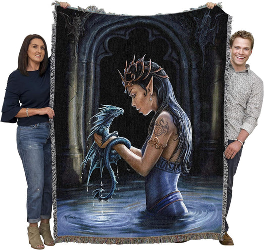 Dragon Beauty by Anne Stokes, Tapestry Throw Woven from Cotton