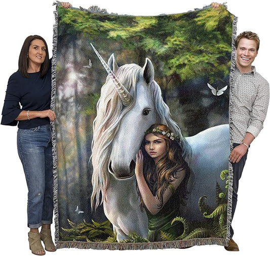 Forest Maiden Unicorn by Anne Stokes, Tapestry Throw Woven from Cotton