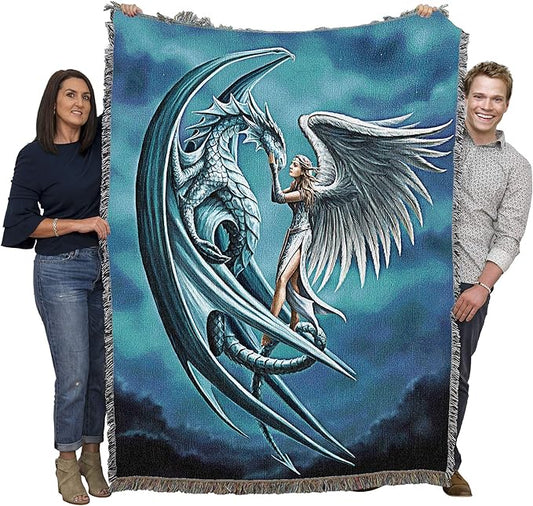 The Blessing by Anne Stokes, Tapestry Throw Woven from Cotton
