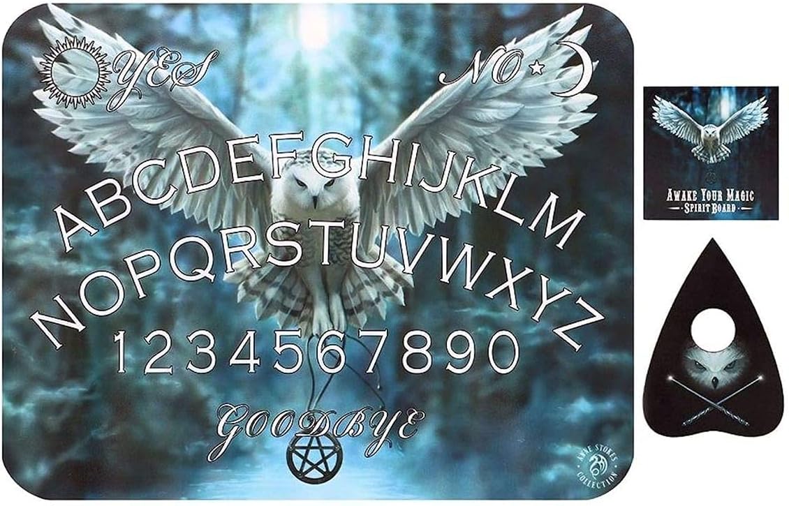 An Anne Stokes Awaken your Magic (Ouija board or Talking Board).. Comes with a planchette and instructions. This spirit board is designed for light-hearted entertainment and is not a professional tool for making spiritual connections.