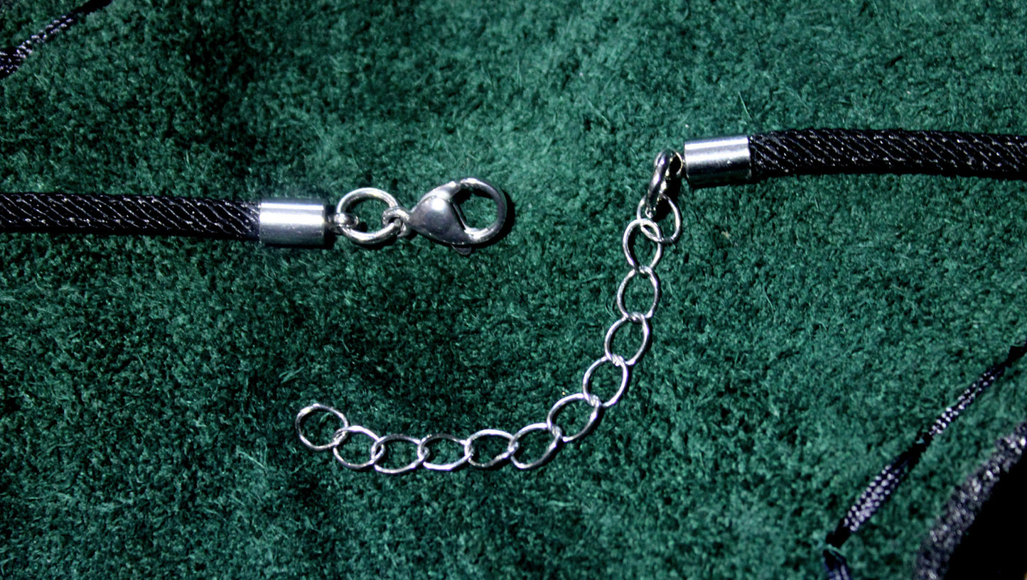 It is made of a zinc alloy metal which measures 9 x 4 cm and has 6 crystals set into the wings. The chord has an adjustable chain at the back to fit different head sizes. This could also be easily removed and swapped for a ribbon is someone had an unusually large or small head.