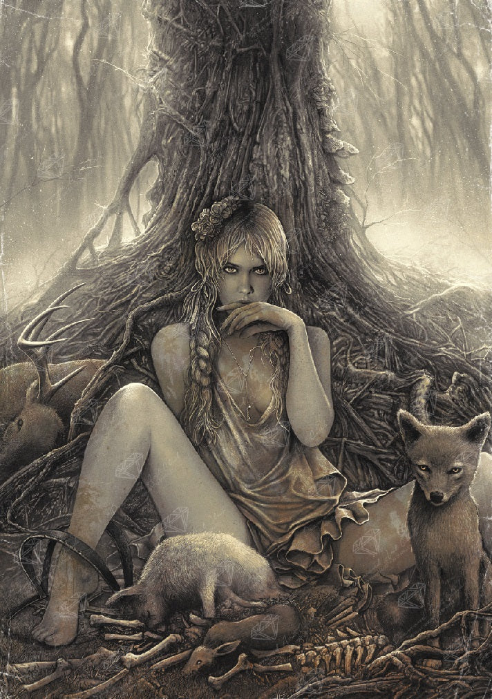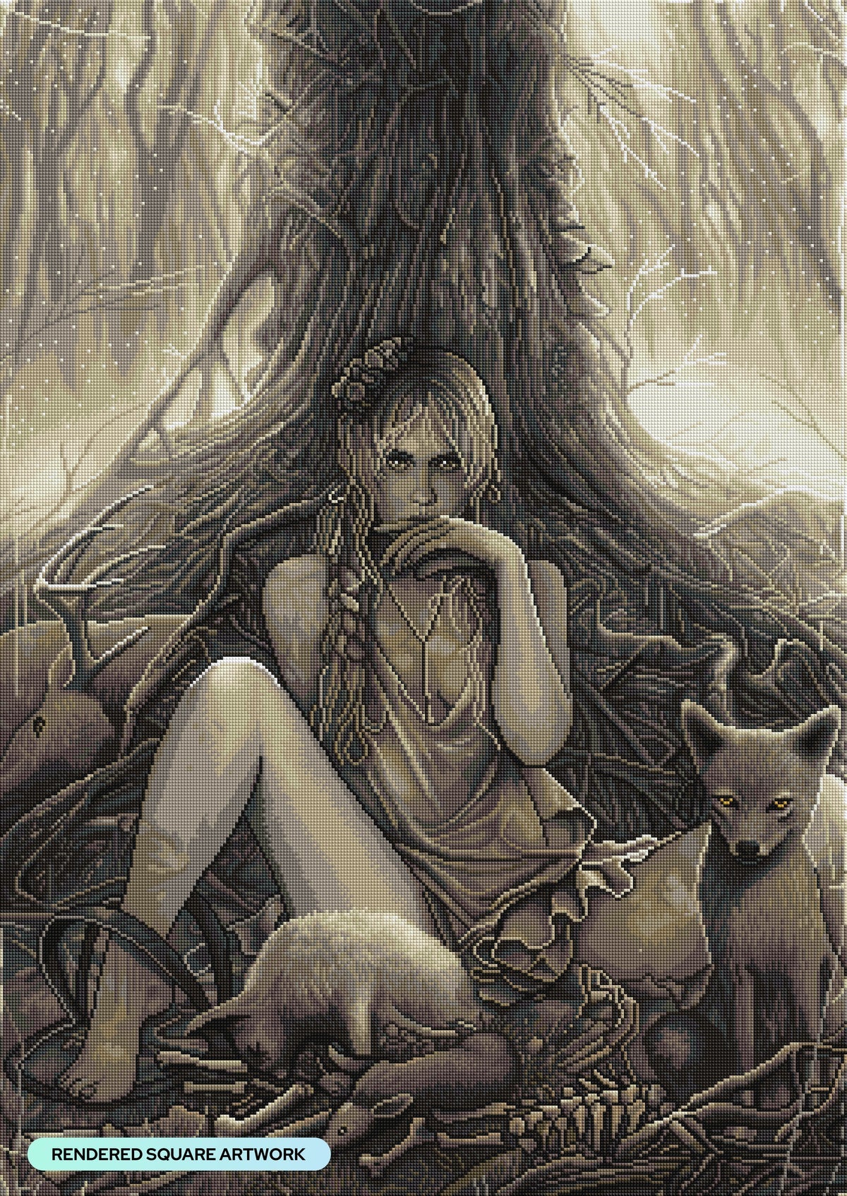 Step into the shadows and embrace the wild, untamed spirit within. Sit entwined with nature, surrounded by mysterious woodland creatures and a captivating, surreal atmosphere.
