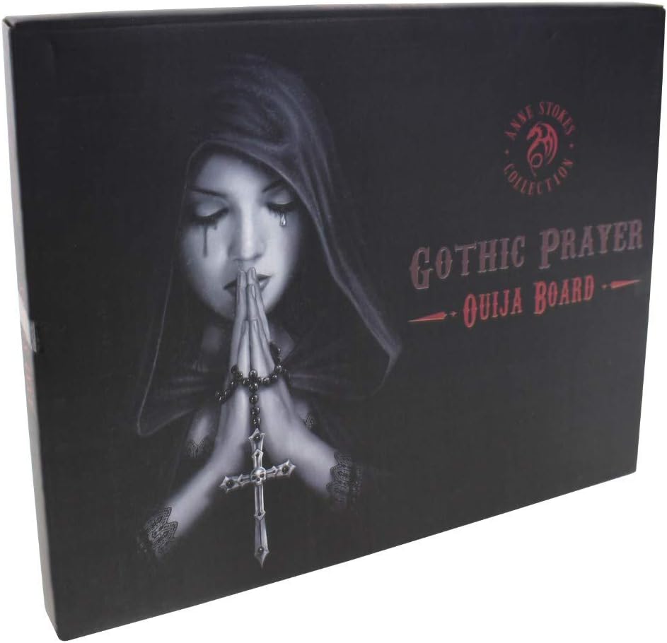 Gothic Prayer by Anne Stokes Prayer (Ouija board or Talking Board). The back of the board features a sentimental poem. Comes with a planchette and instructions. This spirit board is designed for light-hearted entertainment and is not a professional tool for making spiritual connections.