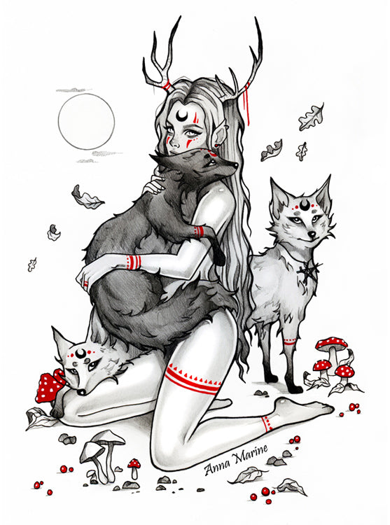 This wonderful signed print of "Kitsune" by Anna Marine is 16.5" x 11.75"