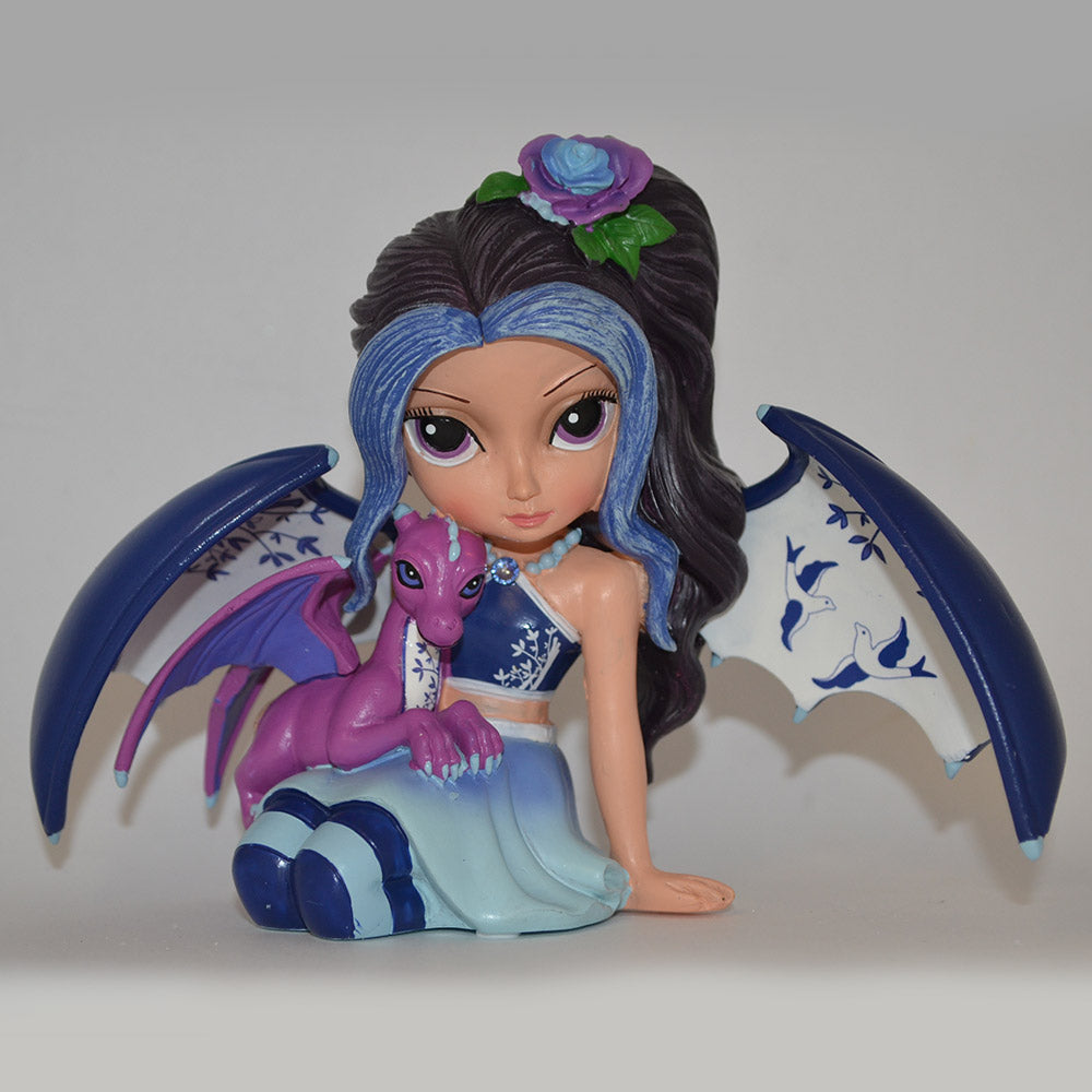 Inspired by Jasmine Becket-Griffith art and the popular Blue Willow fine china pattern, each figurine in this exclusive collection showcases a magical fairy accompanied by her mystical dragon companion. Each is meticulously handcrafted and graced with hand-applied Blue Willow-inspired designs to echo the beauty of this beloved pattern. Finished in a lustrous, high-gloss glaze to mirror the radiance of fine china, every figurine includes a genuine Swarovski® crystal accent for the perfect finishing touch.