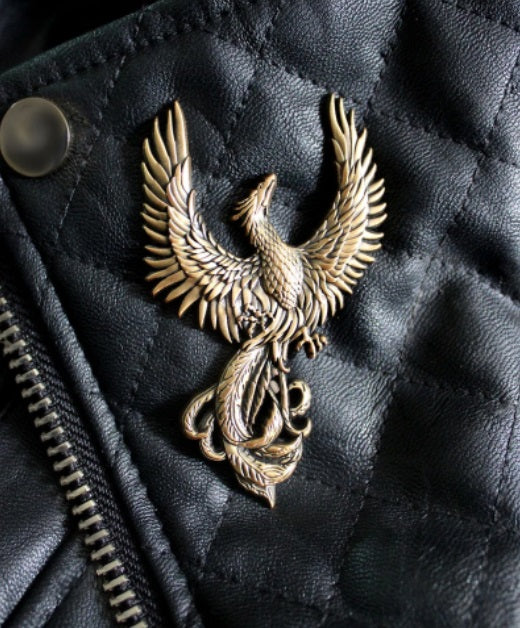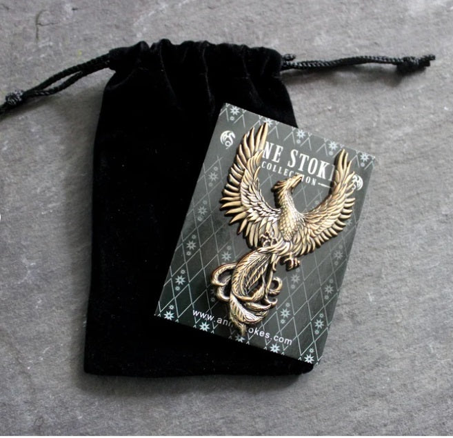 This sculpted metal badge has been made from the phoenix design in Anne Stokes’ Phoenix Rising artwork. The details of the feathers are beautifully rendered. It measures 7.5cm from the tip of the wings to the bottom of the tail and it measures 5cm in width.