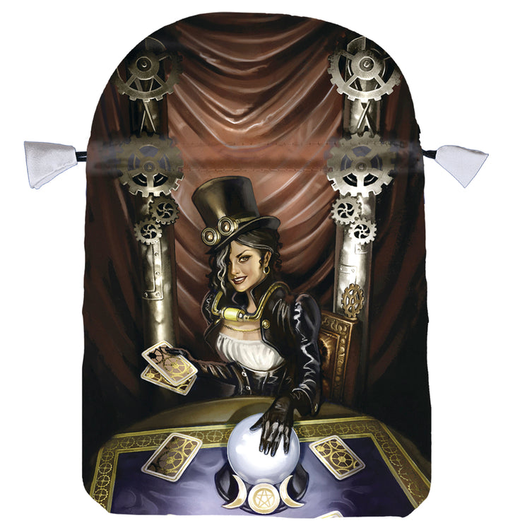 Born from the exquisitely stunning Steampunk Tarot where alternate histories play out in a film reel of fantasy and adventure, this magical bag will hold your favorite Tarot deck.