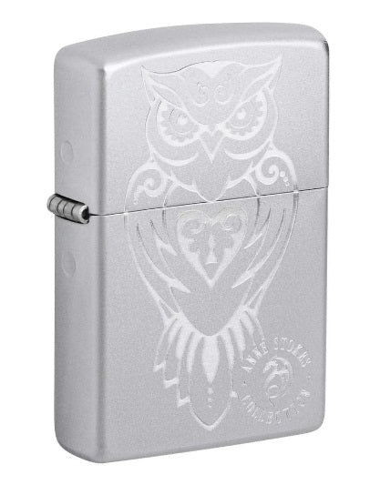 Zippo Lighter: Anne Stokes Engraved Owl - Satin Chrome