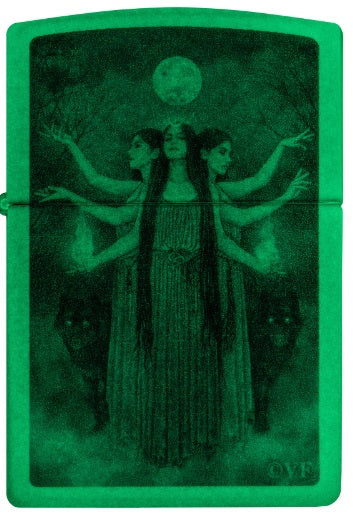 Zippo Lighter: Goddess Hecate by Victoria Francés - Glow-in-the-Dark Green